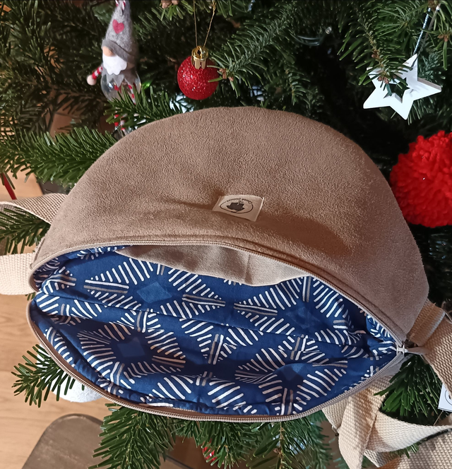 - Composition : Pièce Upcyclée provenant d'un manteau beige "imitation peau de mouton" et de coton provenant d'un drap.