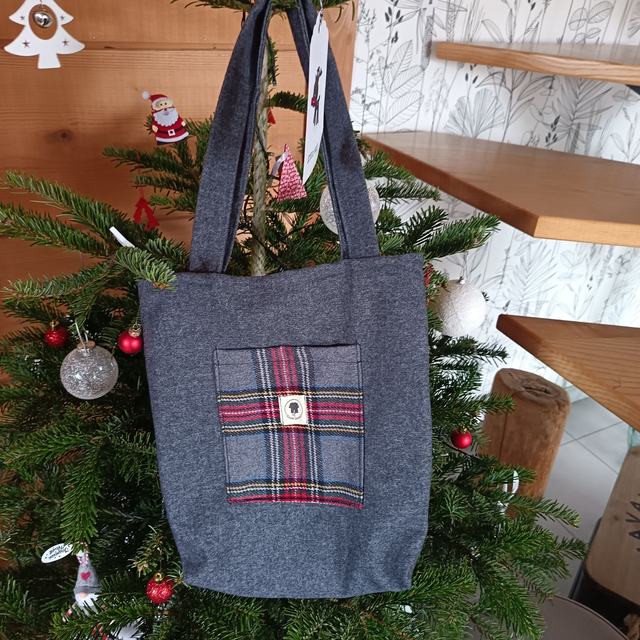 - Composition : Pièce Upcyclée en tartan sur fond gris provenant provenant d'un stock chiné chez Artex.